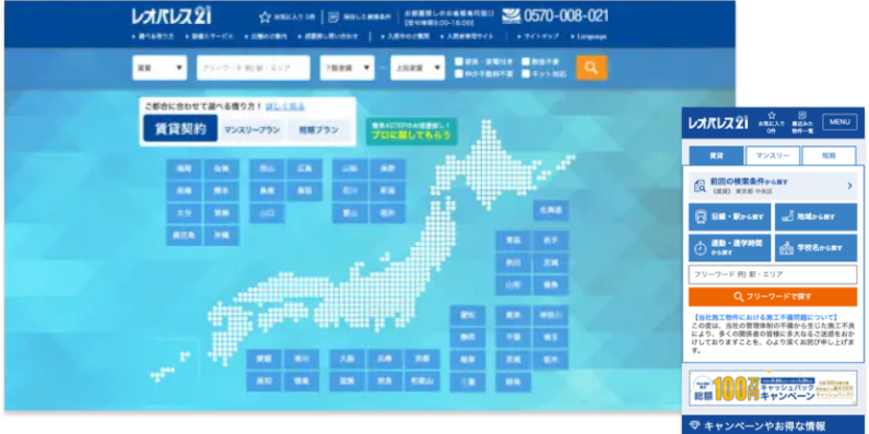 不動産企業の物件検索サイト TOPページリニューアル